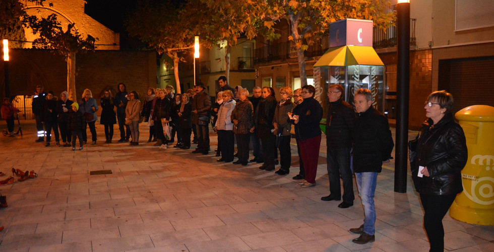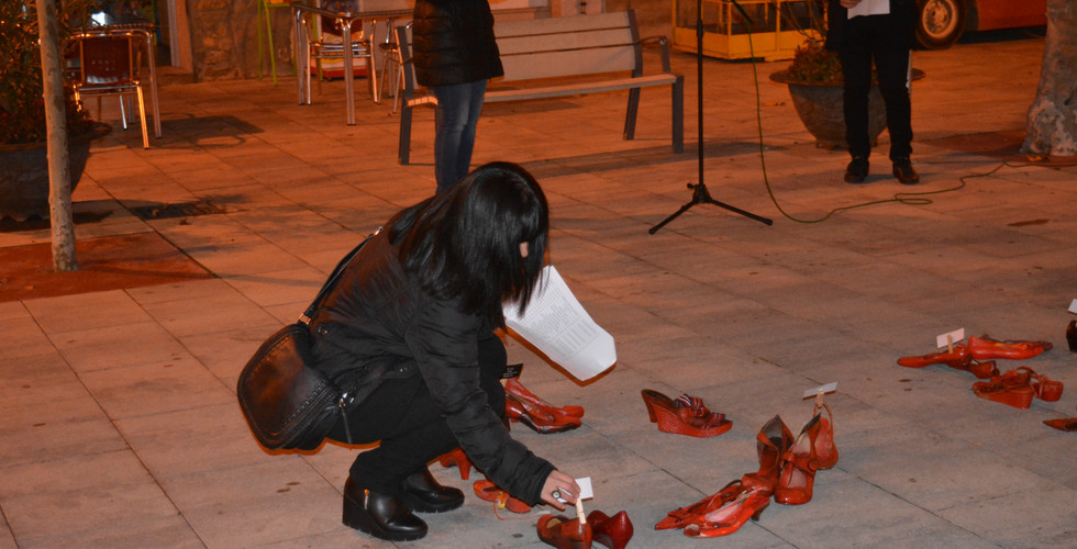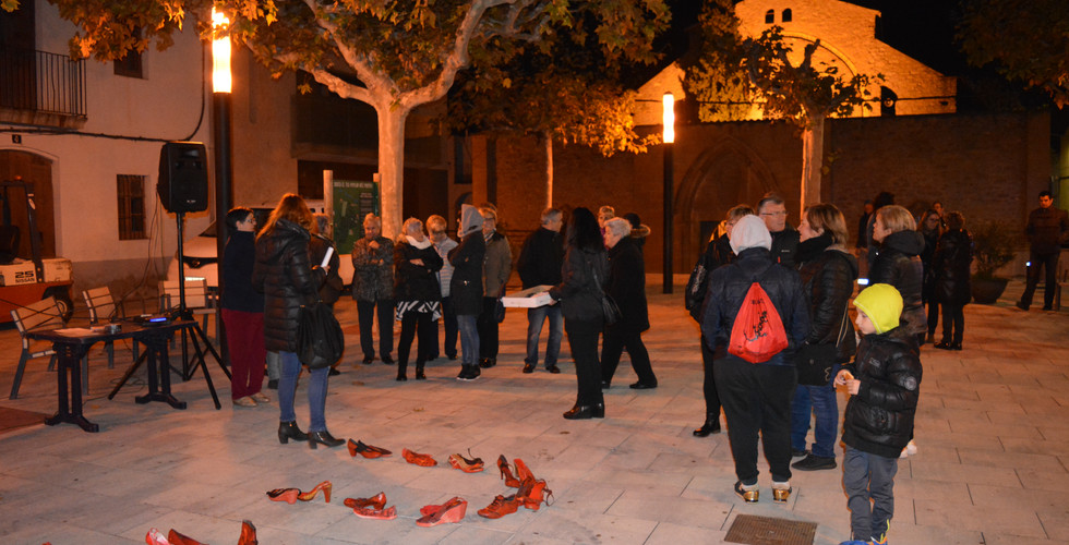 Aquest vespre s’ha dut a terme a la Plaça Major l’acte principal contra la violència de gènere. Al centre de la plaça s’havia escrit la paraula “PROU” fent servir només diversos parells de sabates de color vermell que es van pintar en el taller celebrat el passat dimarts a la Biblioteca Municipal. Durant l’acte les regidores Sandra Alvarado i Lídia Delgado han llegit els noms de totes les víctimes que hi ha hagut a Espanya en el que va de 2016 i s’han col·locat uns papers amb el nom d’aquestes al costat de les sabates. A continuació, l’alcalde Cecilio Rodríguez ha llegit el manifest contra la violència de gènere i s’ha dut a terme un minut de silenci per a finalitzar l’acte.